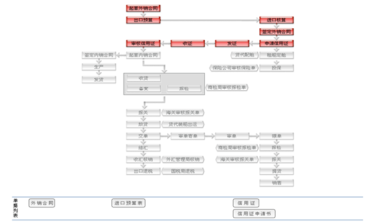 業務流(liu)程:CIF+L/C,CIF+/D/A,CIF+D/P,CIF+T/T Before shipment CIF+T/T After shipment FOB+L/C,FOB+/D/A,FOB+D/P,FOB+T/T Before shipment FOB+T/T After shipment CFR+L/C,CFR+/D/A,CFR+D/P,CFR+T/T Before shipment CFR+T/T After shipment 業務流(liu)程:在(zai)這里填寫和(he)查看所需要(yao)的(de)單據。直接可(ke)在(zai)流(liu)程圖中表現。查看的(de)單據分填寫的(de)單據和(he)收到的(de)單據
