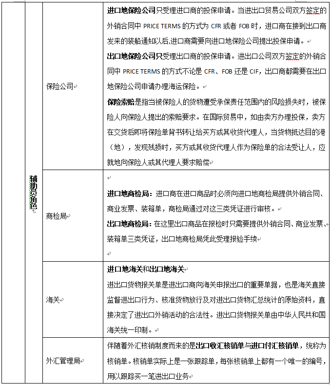 出(chu)口商、進口商、生產商(工廠)、進口銀行、出(chu)口銀行、保險公司、商檢局(ju)、海關、外匯管(guan)理局(ju)、貨(huo)代、國稅局(ju)