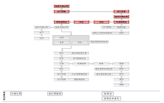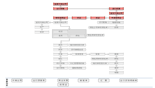 收到(dao)的:信(xin)用證(zheng)、配艙回(hui)單(dan)(dan)、通(tong)關單(dan)(dan)、提單(dan)(dan)管理(li)內(nei)銷合同(tong)(tong) 內(nei)銷合同(tong)(tong)記錄信(xin)用證(zheng)通(tong)知(zhi)書 信(xin)用證(zheng) 修改信(xin)用證(zheng)。