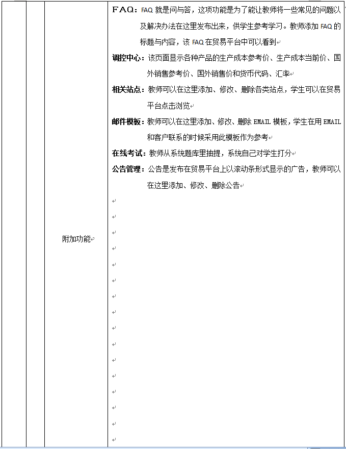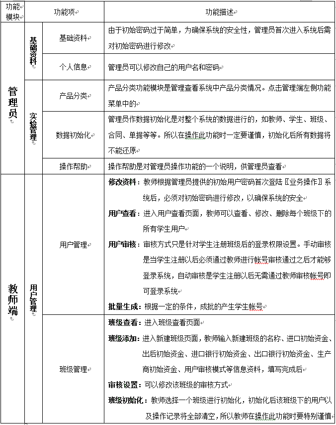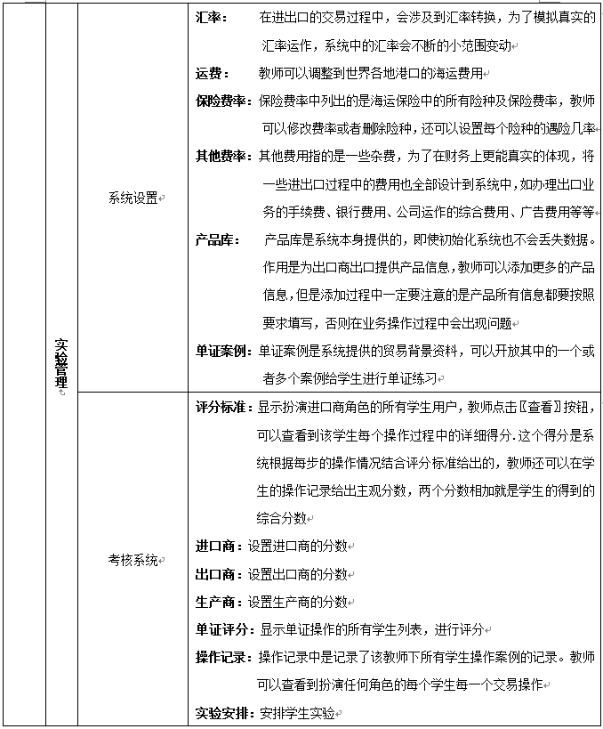 8、教師為(wei)參(can)加實(shi)(shi)習(xi)的學生分(fen)配角(jiao)色,設定(ding)實(shi)(shi)習(xi)評分(fen)標準、實(shi)(shi)時(shi)監控(kong)學生的操作,并且對(dui)(dui)于(yu)模擬貿(mao)易(yi)中(zhong)發(fa)(fa)生的糾紛進行仲裁,最終利用(yong)評分(fen)系(xi)統對(dui)(dui)學生的實(shi)(shi)習(xi)成果給予(yu)評定(ding),教師通過(guo)在(zai)(zai)網(wang)站發(fa)(fa)布新聞、調(diao)整商品成本和價格、調(diao)整匯率、業務費(fei)用(yong)、海運費(fei)、保險費(fei)率及突發(fa)(fa)事件的發(fa)(fa)生概率等(deng)方式(shi)對(dui)(dui)國際貿(mao)易(yi)環境(jing)實(shi)(shi)施宏觀(guan)調(diao)控(kong),讓學生在(zai)(zai)實(shi)(shi)習(xi)中(zhong)充(chong)分(fen)發(fa)(fa)揮主觀(guan)能動(dong)性
