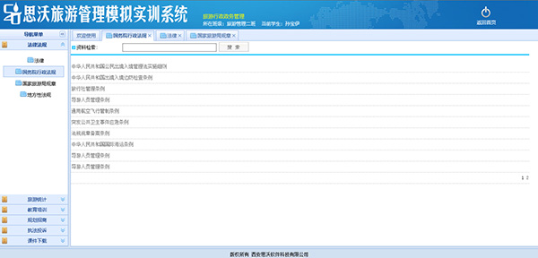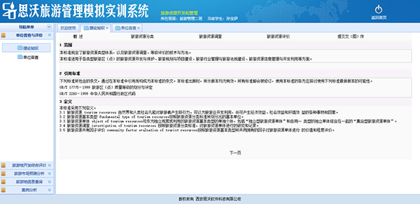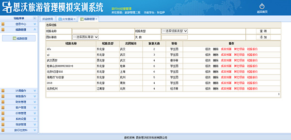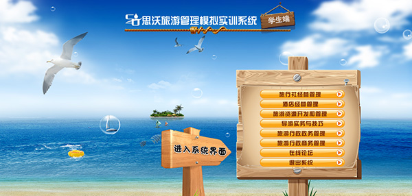 思(si)沃旅(lv)(lv)(lv)游(you)(you)(you)管(guan)理(li)(li)(li)模(mo)擬(ni)(ni)(ni)實(shi)(shi)訓系(xi)統分(fen)為(wei)模(mo)擬(ni)(ni)(ni)操(cao)作(zuo)和(he)旅(lv)(lv)(lv)游(you)(you)(you)知識練習兩大模(mo)塊,涵蓋旅(lv)(lv)(lv)行社(she)業(ye)的(de)(de)(de)(de)(de)分(fen)銷、操(cao)作(zuo)、結算、統計(ji)分(fen)析等(deng)各大業(ye)務模(mo)塊,該(gai)實(shi)(shi)訓教(jiao)(jiao)(jiao)學(xue)平臺軟(ruan)件具備團(tuan)隊(dui)(dui)計(ji)劃、旅(lv)(lv)(lv)游(you)(you)(you)預(yu)訂(ding)(ding)、客房預(yu)訂(ding)(ding)、機票(piao)預(yu)訂(ding)(ding)、景點門票(piao)預(yu)訂(ding)(ding)、團(tuan)餐預(yu)訂(ding)(ding)、車(che)輛(liang)預(yu)訂(ding)(ding)、收付款管(guan)理(li)(li)(li)、供(gong)應商、團(tuan)隊(dui)(dui)客戶、VIP散客管(guan)理(li)(li)(li)等(deng)功(gong)能(neng)。從旅(lv)(lv)(lv)行社(she)經營(ying)管(guan)理(li)(li)(li)、酒店經營(ying)管(guan)理(li)(li)(li)、旅(lv)(lv)(lv)游(you)(you)(you)資源開發與(yu)(yu)管(guan)理(li)(li)(li)、旅(lv)(lv)(lv)游(you)(you)(you)行政管(guan)理(li)(li)(li)、導游(you)(you)(you)實(shi)(shi)務與(yu)(yu)技巧五個方面讓學(xue)生(sheng)(sheng)(sheng)參與(yu)(yu)旅(lv)(lv)(lv)游(you)(you)(you)管(guan)理(li)(li)(li)的(de)(de)(de)(de)(de)模(mo)擬(ni)(ni)(ni)操(cao)作(zuo),每個方面又細分(fen)為(wei)實(shi)(shi)際流(liu)程(cheng)(cheng)中(zhong)涉及的(de)(de)(de)(de)(de)每個細節,因此,學(xue)生(sheng)(sheng)(sheng)可(ke)以從中(zhong)學(xue)習到旅(lv)(lv)(lv)游(you)(you)(you)管(guan)理(li)(li)(li)的(de)(de)(de)(de)(de)全面的(de)(de)(de)(de)(de)操(cao)作(zuo)流(liu)程(cheng)(cheng)。此外(wai),軟(ruan)件中(zhong)教(jiao)(jiao)(jiao)師(shi)端對(dui)(dui)應的(de)(de)(de)(de)(de)實(shi)(shi)驗設(she)(she)置(zhi),讓教(jiao)(jiao)(jiao)師(shi)可(ke)以方便地(di)為(wei)學(xue)生(sheng)(sheng)(sheng)設(she)(she)置(zhi)實(shi)(shi)驗的(de)(de)(de)(de)(de)不同(tong)因素(su),同(tong)時,教(jiao)(jiao)(jiao)師(shi)還可(ke)以查看學(xue)生(sheng)(sheng)(sheng)的(de)(de)(de)(de)(de)操(cao)作(zuo)結果,從而(er)能(neng)夠對(dui)(dui)學(xue)生(sheng)(sheng)(sheng)的(de)(de)(de)(de)(de)實(shi)(shi)驗進行評價。教(jiao)(jiao)(jiao)學(xue)軟(ruan)件系(xi)統的(de)(de)(de)(de)(de)使(shi)用可(ke)以提高學(xue)生(sheng)(sheng)(sheng)的(de)(de)(de)(de)(de)學(xue)習興趣,同(tong)時也為(wei)教(jiao)(jiao)(jiao)師(shi)減輕工作(zuo)負擔(dan)。本(ben)公司(si)為(wei)了更好(hao)滿足高校的(de)(de)(de)(de)(de)教(jiao)(jiao)(jiao)學(xue)需(xu)求,會根據高校的(de)(de)(de)(de)(de)需(xu)求提供(gong)旅(lv)(lv)(lv)游(you)(you)(you)管(guan)理(li)(li)(li)實(shi)(shi)訓室解決方案。