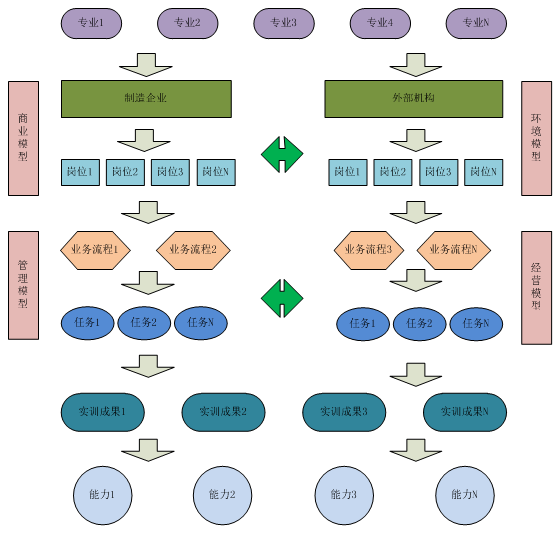 跨專(zhuan)業(ye)(ye)校內(nei)綜(zong)合(he)實訓平(ping)臺(tai)(tai)(tai),簡(jian)稱跨專(zhuan)業(ye)(ye)平(ping)臺(tai)(tai)(tai)。是(shi)以生(sheng)產制造(zao)企業(ye)(ye)為核心、以制造(zao)業(ye)(ye)各部門業(ye)(ye)務(wu)流程為驅動、以行政(zheng)辦事單位和金融單位等服務(wu)性(xing)機構為依(yi)托,生(sheng)產業(ye)(ye)務(wu)鏈(lian)、流通業(ye)(ye)務(wu)鏈(lian)、資本(ben)運作業(ye)(ye)務(wu)鏈(lian)相互交織、高度整合(he)的(de)網絡狀仿真綜(zong)合(he)運作內(nei)容體系,是(shi)模(mo)擬與現實接軌最真實化最低成(cheng)本(ben)的(de)實習(xi)訓練平(ping)臺(tai)(tai)(tai)。是(shi)一個(ge)全方位、立體化、具有廣泛受(shou)益面(mian)的(de)綜(zong)合(he)實習(xi)平(ping)臺(tai)(tai)(tai)。