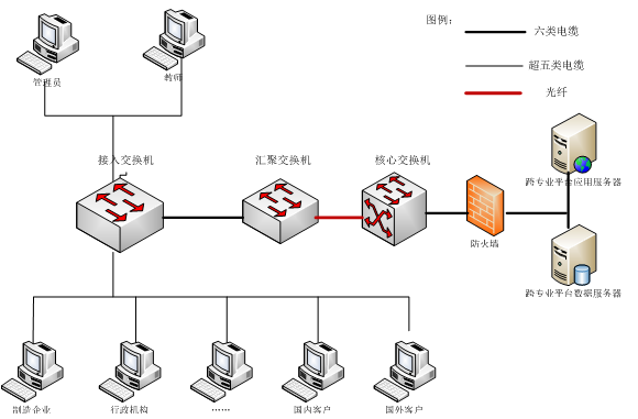 整個網絡設(she)(she)(she)計(ji)以千(qian)兆(zhao)為主(zhu)干,百兆(zhao)到(dao)(dao)桌面的結構,匯(hui)聚層交換(huan)機(ji)(ji)通過(guo)千(qian)兆(zhao)光纖連接到(dao)(dao)核(he)心交換(huan)機(ji)(ji),再(zai)通過(guo)千(qian)兆(zhao)電纜(lan)連接到(dao)(dao)接入層交換(huan)機(ji)(ji),這樣(yang)的設(she)(she)(she)計(ji)結構具有層次化(hua)設(she)(she)(she)計(ji)節約(yue)線路成本(ben)、保(bao)障安全、便(bian)于管理、擴展靈活等特點。